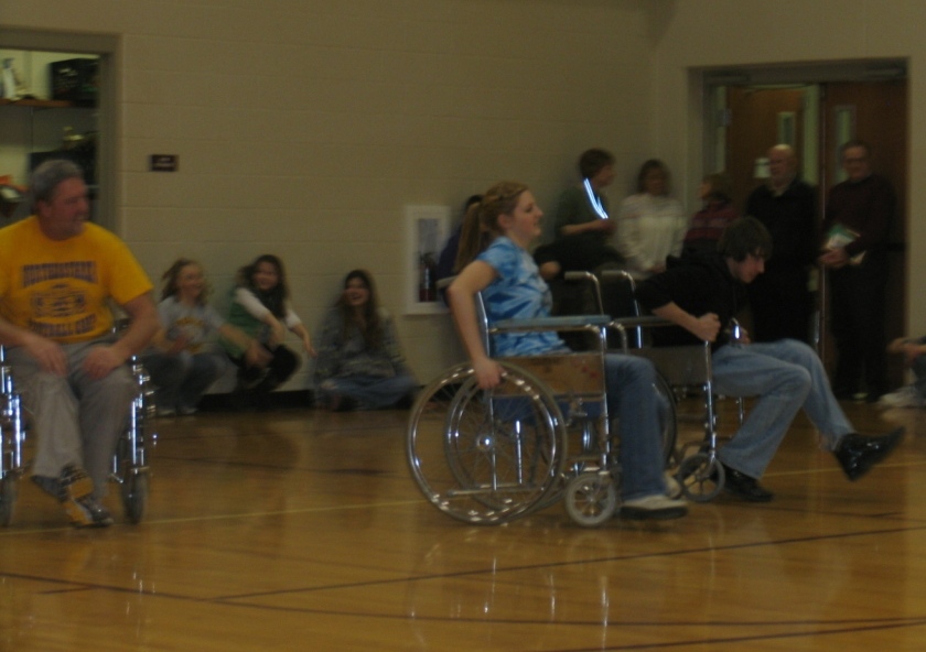 In 2010 the Webster FFA Chapter planned and carried out many FFA Week Activities. On Monday, members volunteered to serve lunch to the student body, helping out the lunch ladies. Tuesday was the Animal Nursery, where kids learned about farm animals and safety. Wednesday was the Faculty Breakfast, with officers coming in and cooking breakfast for all the teachers. Thursday was the Grand Finale, with it being Dress Up Day and the annual Wheelchair Basketball game! The FFA Members played tough, but lost to the teachers 31-20. On Saturday the 27th, members ended the week by traveling to the Corduroy Classic in Brookings.